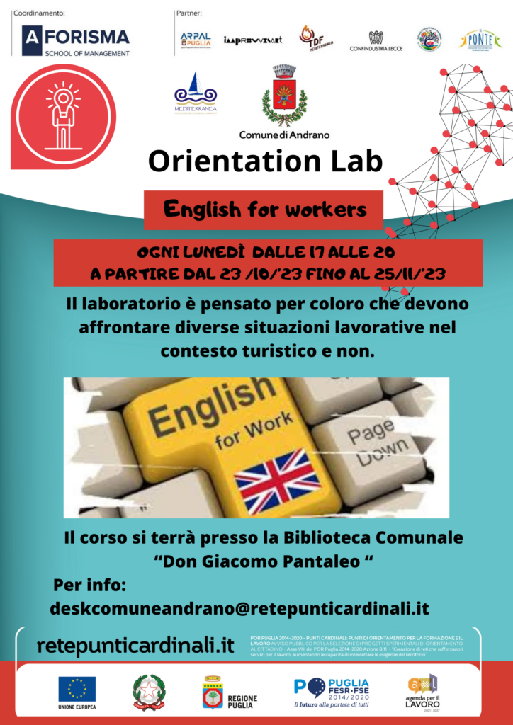 Un laboratorio pensato per coloro che devono affrontare diverse situazioni lavorative , con una vocazione molto pratica , con un vocabolario tipico e fraseologia utile.