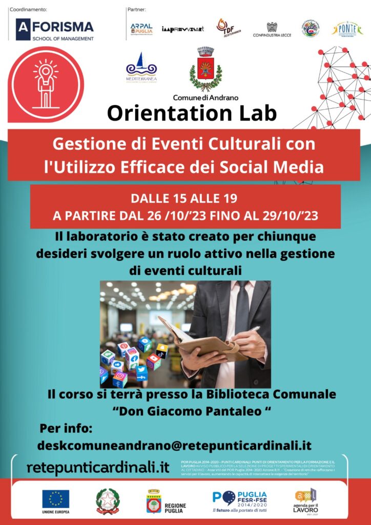 Questo laboratorio è progettato per fornire una solida base di competenze e conoscenze per coloro che desiderano pianificare, organizzare e promuovere eventi culturali di successo, sfruttando il potenziale dei social media. Attraverso le dieci emozionanti lezioni, esploreremo come combinare la gestione degli eventi culturali con una strategia efficace sui social media per massimizzare il coinvolgimento del pubblico e l’impacto culturale.