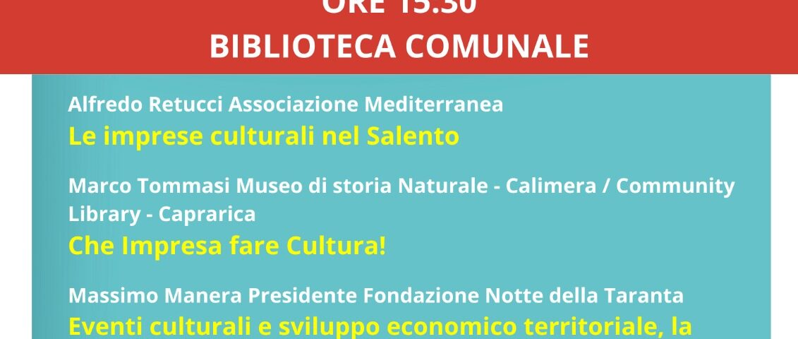 Nel cuore del Salento, l’energia creativa prende vita e si traduce in opportunità tangibili nel mondo delle imprese culturali e creative. Per esplorare questo affascinante universo, la comunità di Andrano accoglierà il convegno “L’Impresa della Cultura e della Creatività” il 20 ottobre 2023 presso la Biblioteca Comunale nell’ambito del Progetto Punti Cardinali.