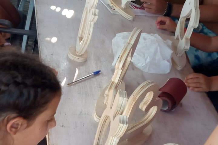 ” I miracoli sono sogni che diventano luce”. Le luminarie salentine sono una forma d’arte, che hanno il potere di trasformare i luoghi più disparati in posti incantevoli. Sin dall’antichità venivano utilizzate come mezzo per creare armonia tra la gente durante le feste patronali. Oggi sono diventate dei ricercatissimi oggetti di design formati da luci colorate e legno bianco. I nostri piccoli artigiani, nei quattro giorni di laboratorio organizzato dalla Pro Loco, presso il Lido Swim, rientrante nel progetto del Comune di Andrano “Lavoro e (è) crescita” di Punti Cardinali, hanno realizzato le loro luminarie. Hanno riscoperto, così, la bellezza di un antico mestiere che richiede fantasia, costanza e pazienza, ma il cui risultato ogni volta fa brillare gli occhi. Partendo da uno schizzo su foglio bianco, insieme hanno deciso le forme da realizzare: un pesce, un cuore, un pumo salentino e una pala di fico d’india. Una volta ricevute le strutture in legno, le hanno raffinate, colorate e applicato la luce. Ognuno ha dato il suo tocco personale con un tocco di colore. E’ stato un laboratorio molto interessante e coinvolgente, che attirato a se molti curiosi che si trovavano al lido in vacanza.