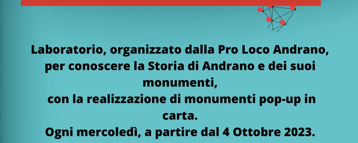 Grazie al laboratorio “Storia di Andrano POP UP”, organizzato dalla Pro Loco con l’Istituto Comprensivo di Andrano, nell’ambito del progetto “Lavoro e(è) crescita” del comune di Andrano. di Punti Cardinali, i bambini delle classi 4° e 5° potranno conoscere, attraverso il gioco, la storia e la bellezza del nostro patrimonio storico e artistico, stimolando in loro il senso di appartenenza ad una comunità cittadina, apprezzandone la storia.