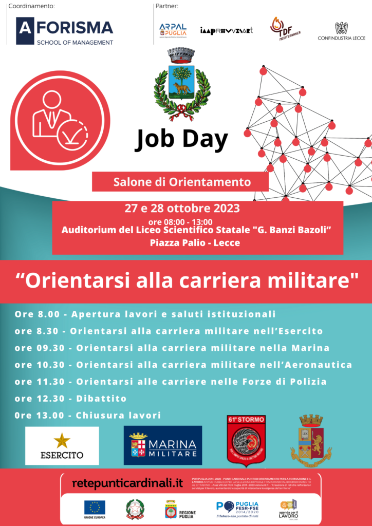 L’obiettivo di questa iniziativa sarà quello di portare a conoscenza gli studenti delle varie opportunità lavorative e di carriera presenti nel mondo delle Forze Armate (Esercito, Marina, Aeronautica) e delle Forze di Polizia (Polizia di Stato).