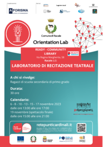 Il lavoro sviluppato nei percorsi di counseling e scrittura creativa confluirà nel laboratorio teatrale tenuto da Liliana Putino. In questa fase, i testi scritti dai partecipanti lasceranno la pagina per conquistare lo spazio di scena: la parola si trasformerà in voce, corpo, gestualità, mimica, e i partecipanti si metteranno ancora una volta alla prova diventando loro stessi interpreti, davanti al pubblico, dei loro testi, portati in scena nello spettacolo che concluderà il percorso.