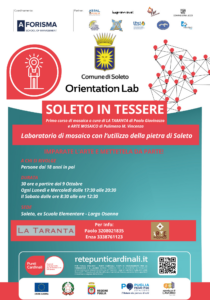 Il laboratorio di mosaico con l’utilizzo della pietra di Soleto è un’opportunità per esplorare l’arte antica del mosaico utilizzando una materia prima locale unica. La pietra di Soleto è famosa per la sua bellezza e varietà di colori, che la rendono ideale per creare opere d’arte decorative e funzionali.